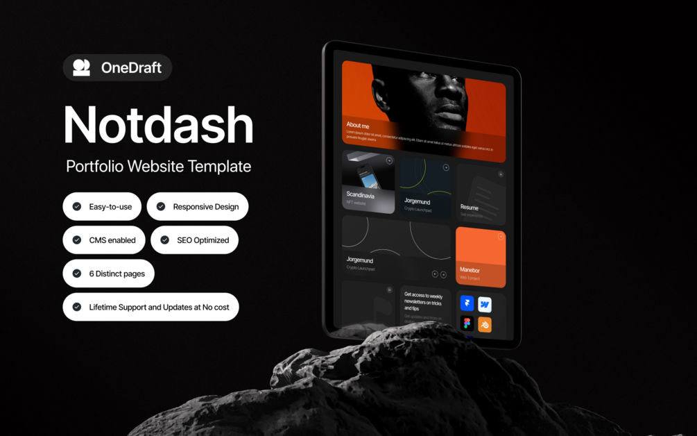 Notdash is a dashboard-styled portfolio website meticulously designed to captivate visitors instantly with a familiar and intuitive look. Combining functionality with a sleek, modern aesthetic, Notdash ensures your portfolio stands out, making a lasting impression on your audience. Whether you're showcasing your projects, skills, or achievements, Notdash offers a user-friendly and visually engaging platform tailored to highlight your unique professional journey.